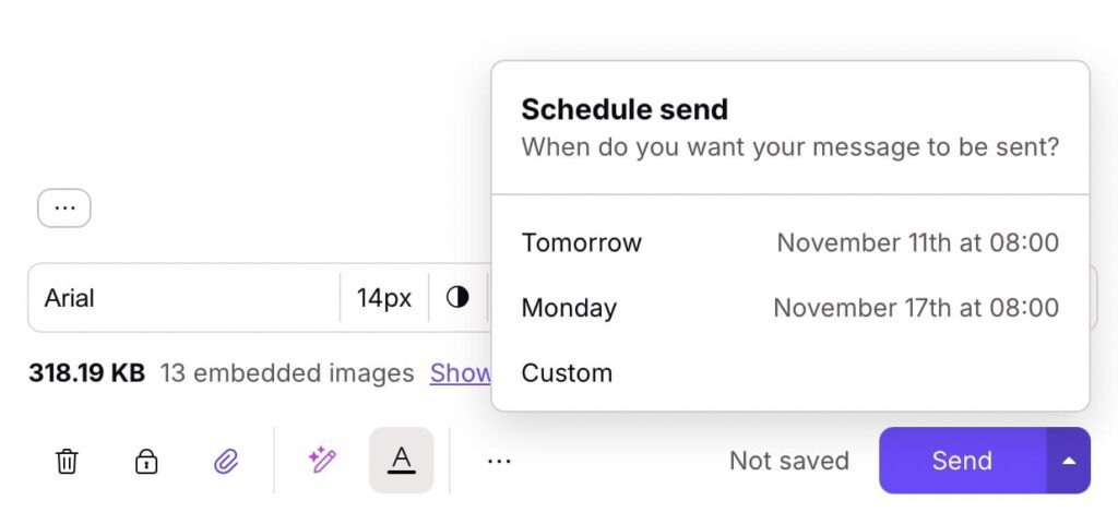 Eine praktische Funktion ist die Möglichkeit, E-Mails zeitversetzt zu versenden: